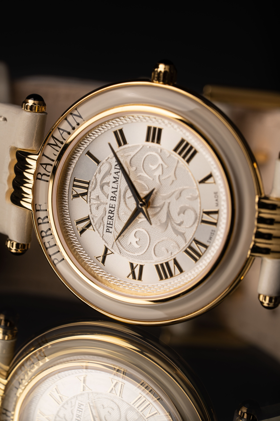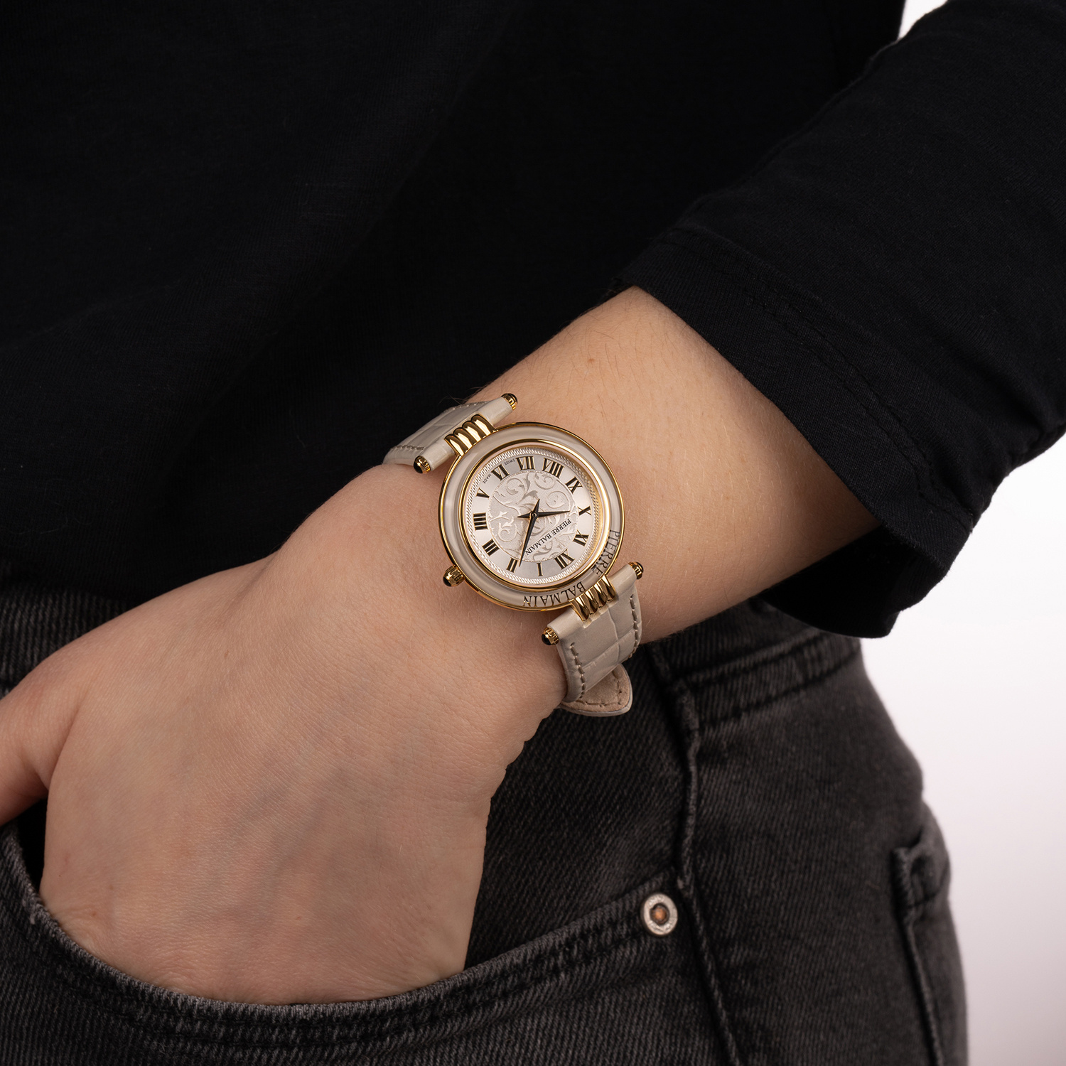 Balmain redonne vie à l’une de ses pièces iconiques. Des arabesques, des couleurs vives, de la sophistication et de la féminité. Les nouvelles créations de la collection Haute Élégance subliment tout ce qui fait l’essence de Balmain. Les arabesques de Balmain ressortent avec finesse sur le cadran aux chiffres romains.