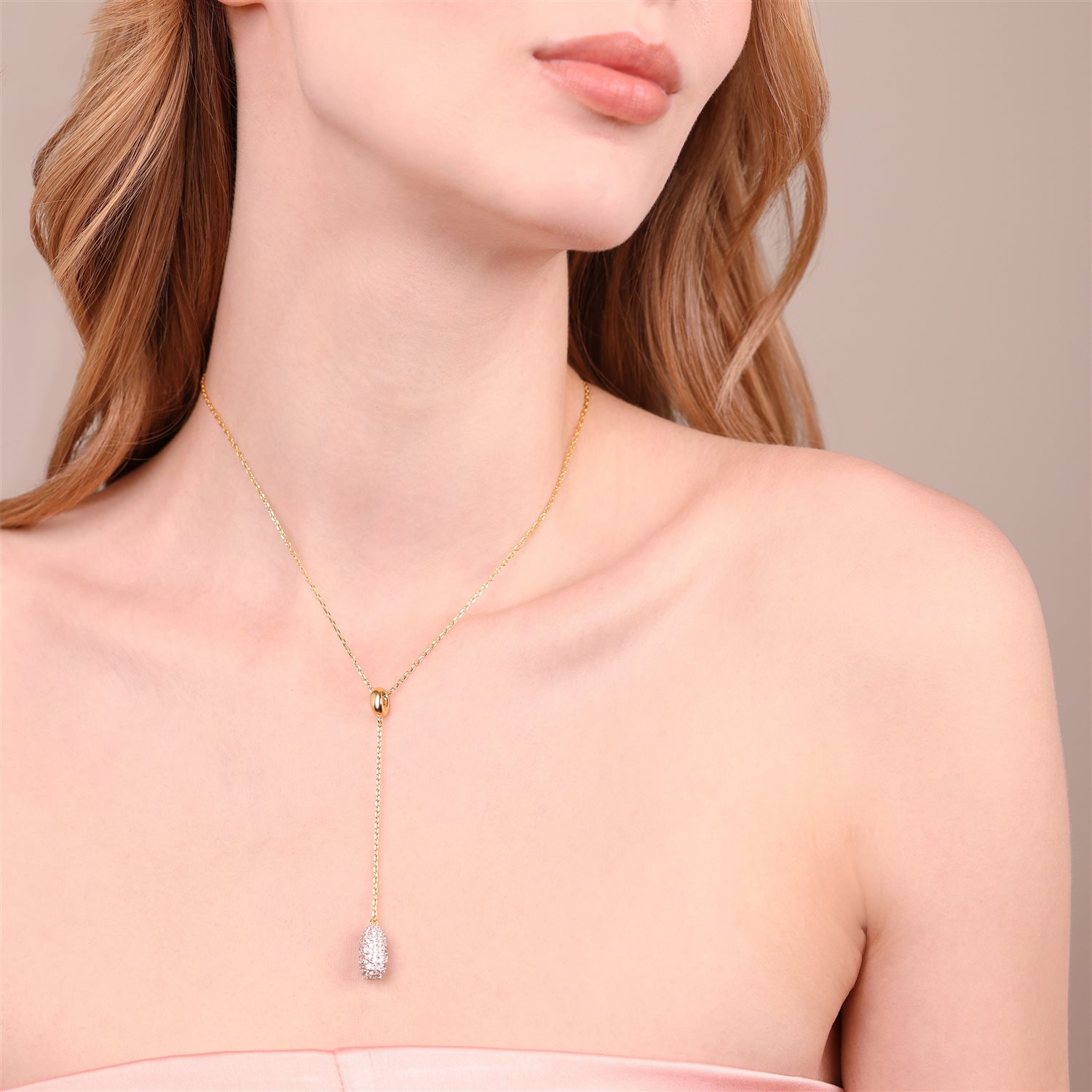 Collier cravate plaqué d’or jaune 18 carats avec zircona. Tous les bijoux Bronzallure sont fabriqués à partir d’un alliage unique et breveté de 15 matériaux différents d’une grande dureté et résistance. Ils sont 100 % sans nickel ni cadmium et donc hypoallergéniques. De plus, le placage en or jaune 18 carats adhère particulièrement bien à cet alliage, de sorte que vos bijoux restent beaux pendant très longtemps. La conception et la production de tous les bijoux Bronzallure sont entièrement réalisées en Italie.