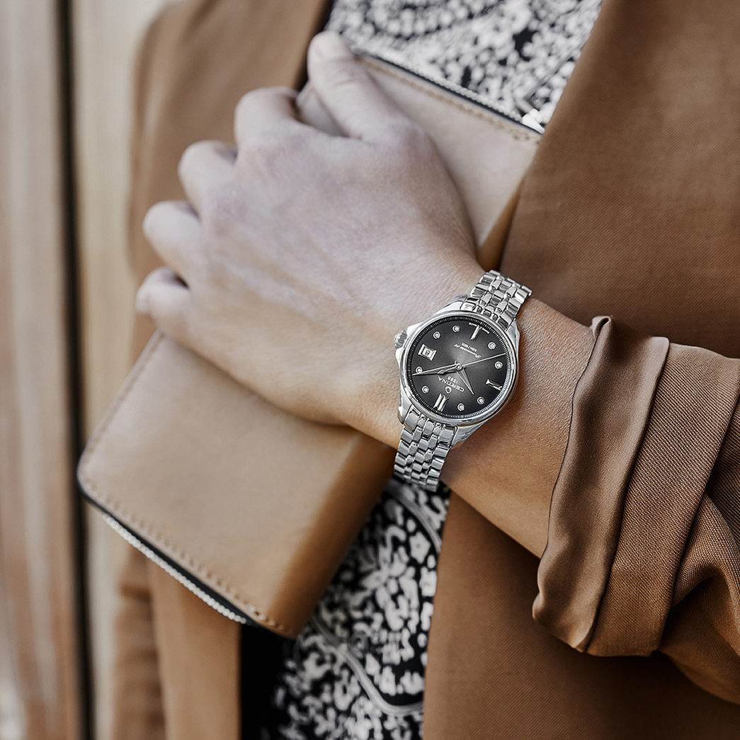 Cette montre pour femme est unique en son genre. Son calibre Powermatic lui assure non seulement une réserve de marche de 80 heures mais aussi une précision à toute épreuve grâce à un spiral NivachronTM – même les champs magnétiques ne peuvent perturber sa bonne marche. Des diamants scintillants et des détails raffinés lui confèrent une élégance intemporelle.